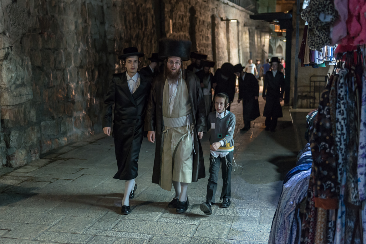 Żydowska rodzina po modlitwie pod Ścianą Płaczu.