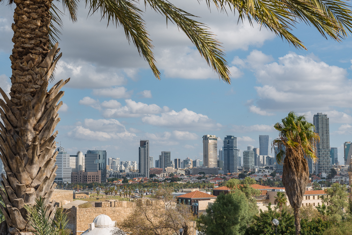 Widok na centrum miasta ze wzgórza w Jafie.