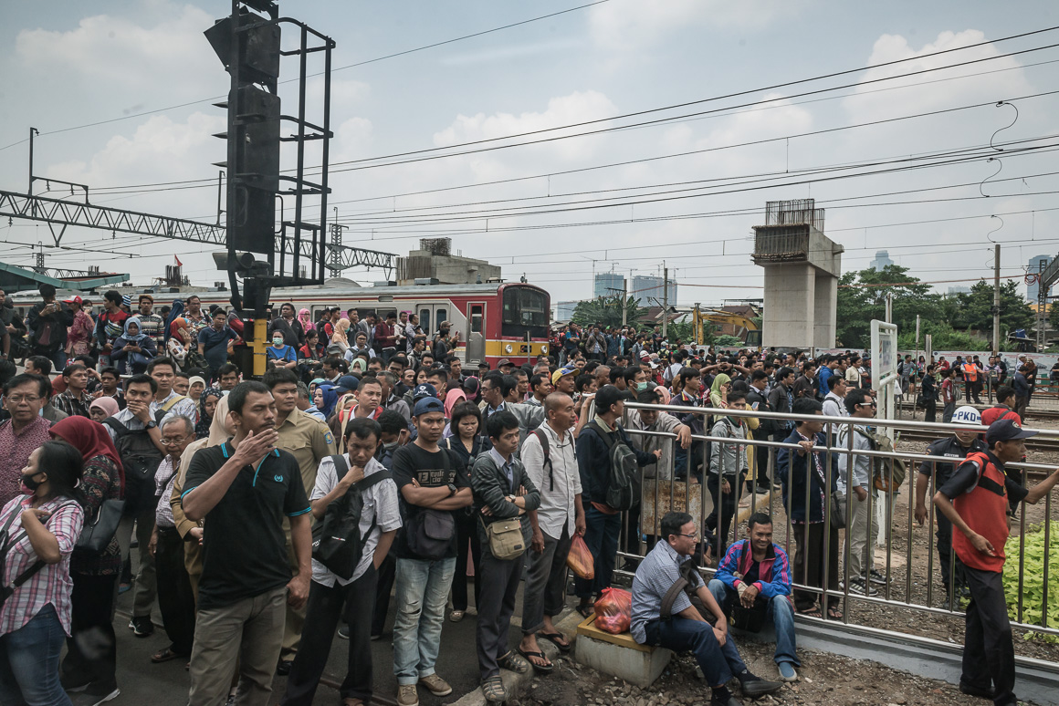 Ludzie czekający na pociąg.